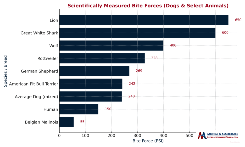 Many viral charts and online claims suggest that certain breeds can exert over 700 PSI (pounds per square inch) but most of these figures have no scientific basis.